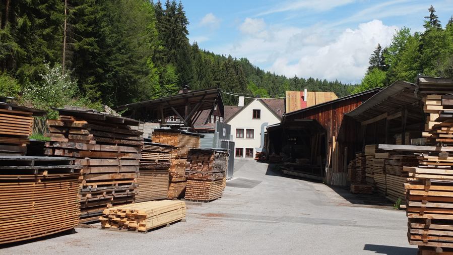 .... und wir wandern an einem noch in Betrieb befindlichen Sägewerk vorbei.