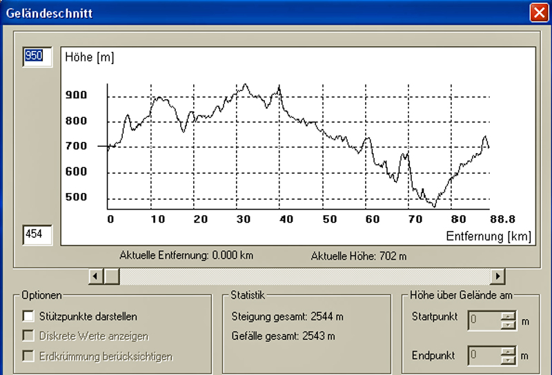 Gesamtsteigung 452 m / Gesamtgefälle 493 m