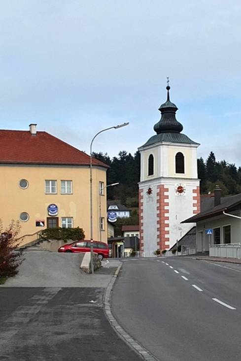 Mönichkirchen, vorbei an der Pfarrkirche, die sich schon seit dem 12.