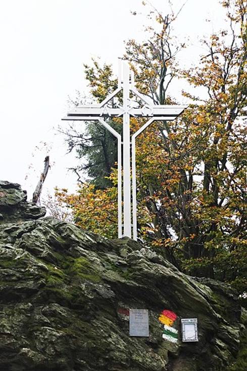 Höhenmeter unterhalb des eigentlichen Gipfels dieses Gipfelkreuz.