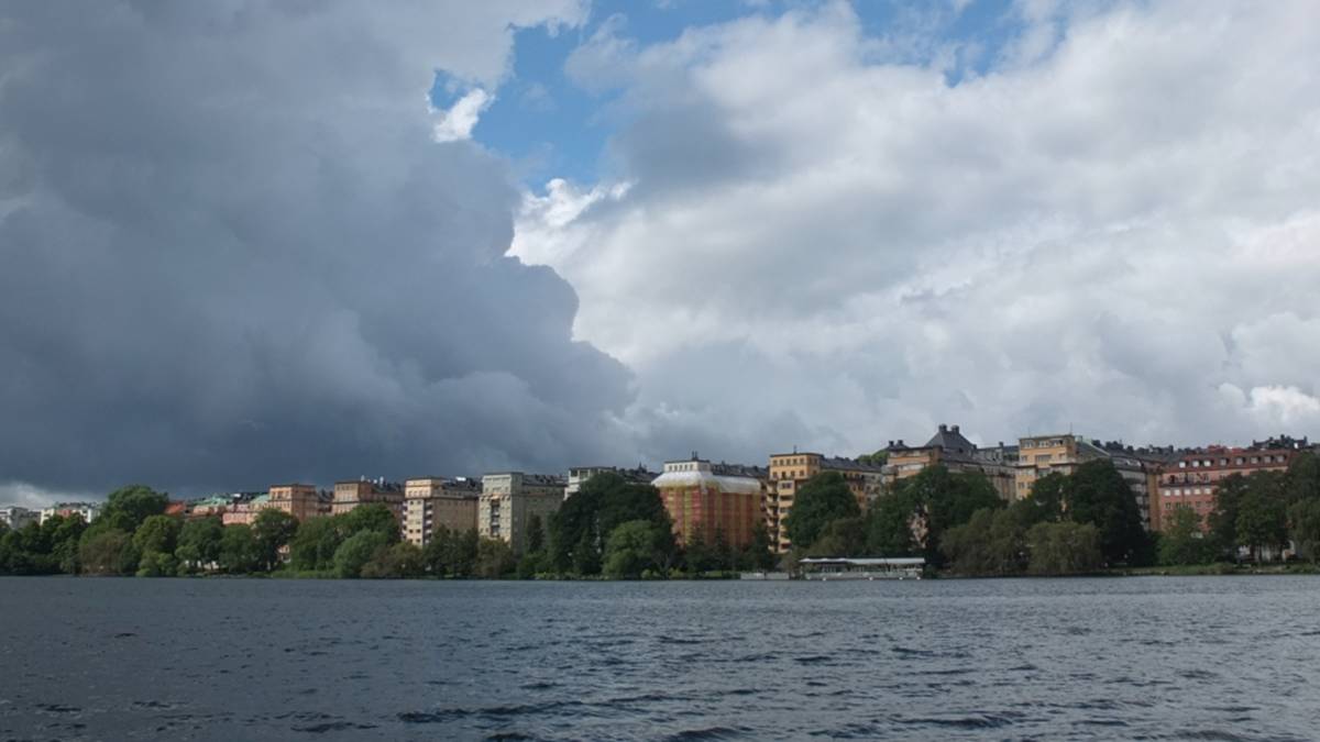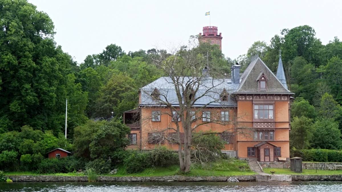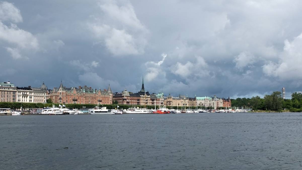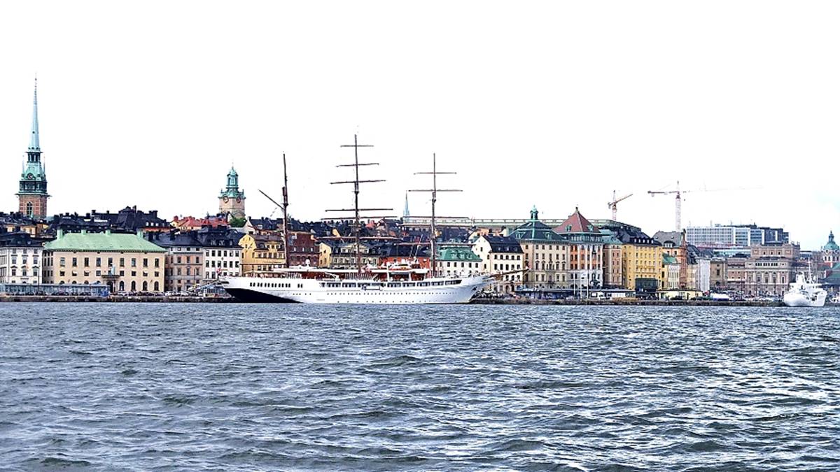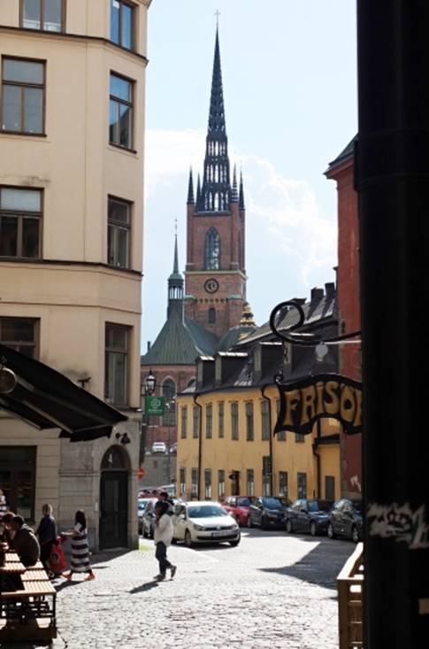 und sahen die Insel Riddarholmen mit der Riddarholms-Kirche, berühmt für ihren Westturm aus
