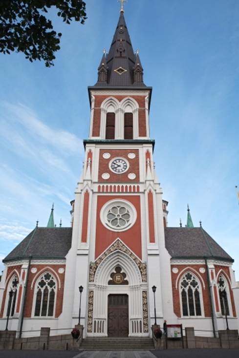 schönen Blick auf den gotischen Dom Uppsalas. Er ist die höchste Kirche