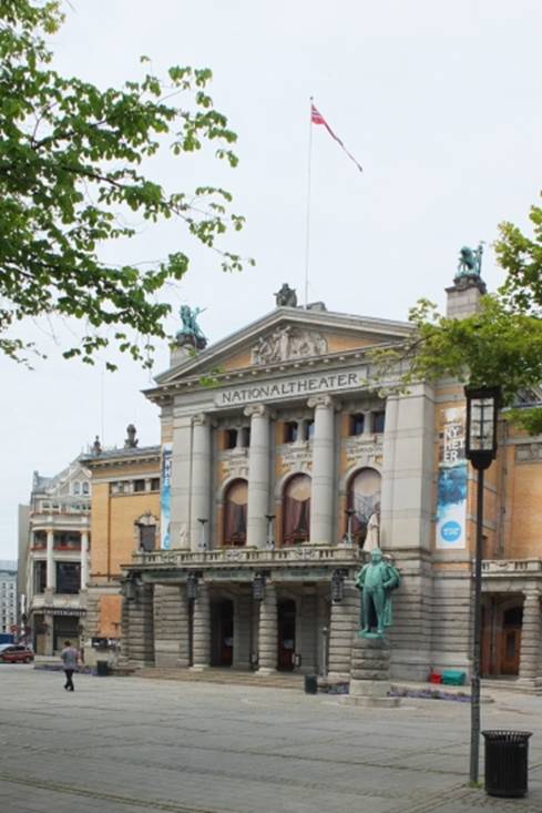 entfernt steht das 1899 eröffnete norwegische Nationaltheater.