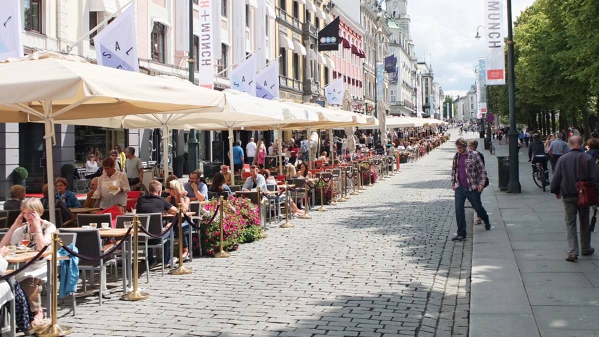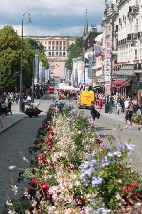 Über die „Karl Johans gate“, der Hauptstrasse der Innenstadt Oslos spazierten