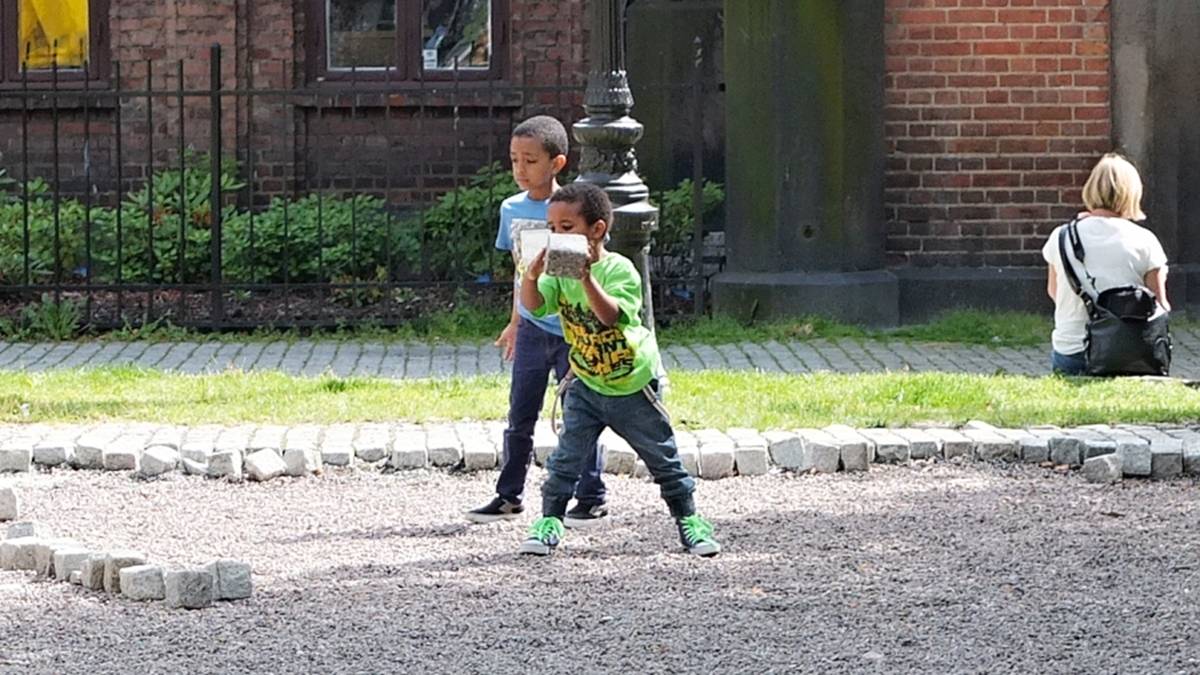 beobachteten wir Kinder, die sich im Pflasterweitwurf trainieren.