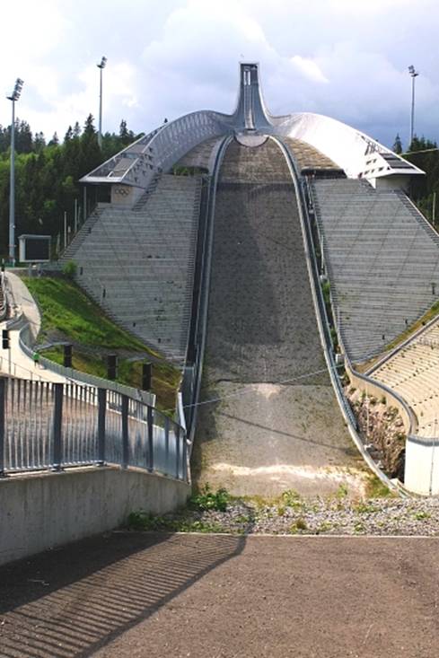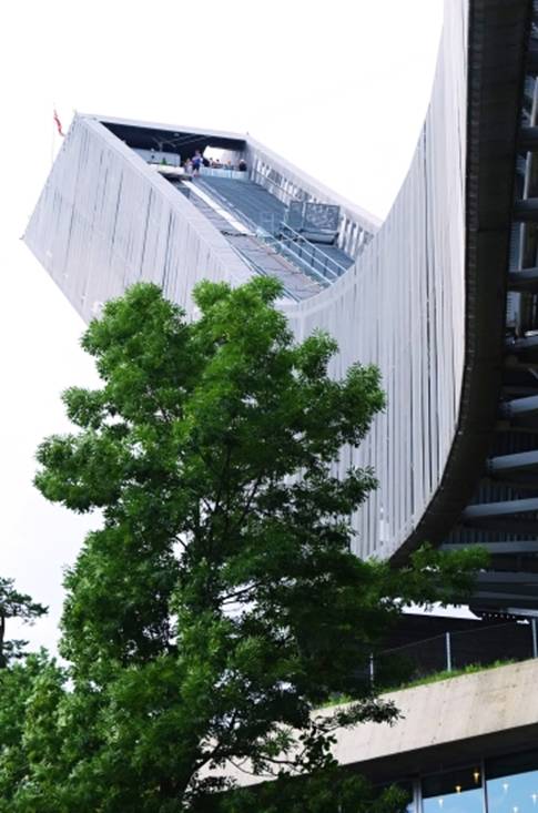 Meter hohen Anlaufturm der 2009 – 2010 komplett umgebauten Sprungschanze.