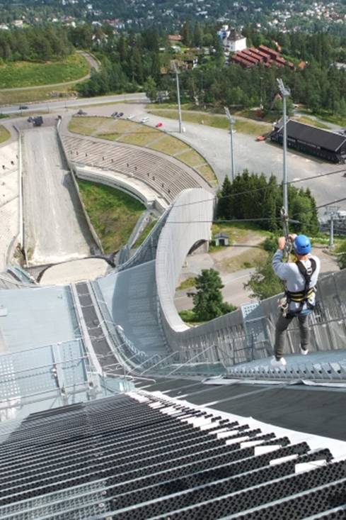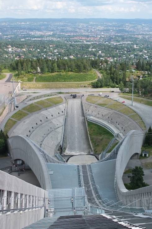 Osloer U-Bahn „T 1“ an den westlichen Stadtrand, um die berühmte „Holmenkollen“ - Sprungschanze zu besuchen.