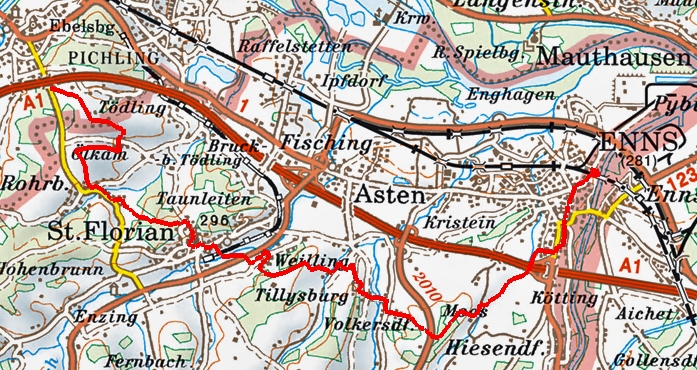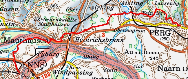 von Enns nach Perg. Wir gehen 18,1 km, davon 257