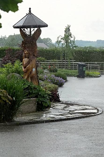 Holz mit einer bekrönten Maria mit einem Schwert in der Brust, befindet sich