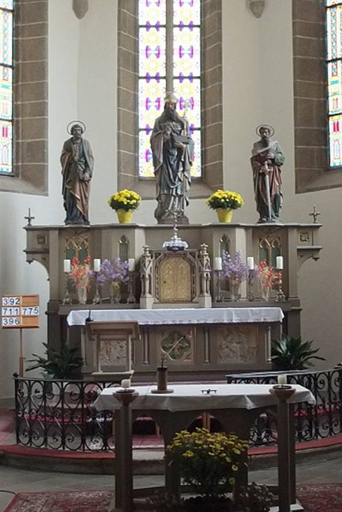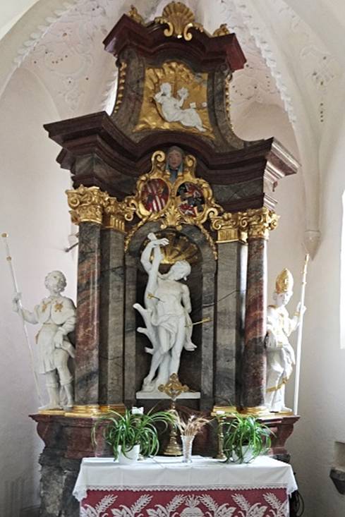 wird von der Figur des Namenspatrons der Kirche, des hlg.