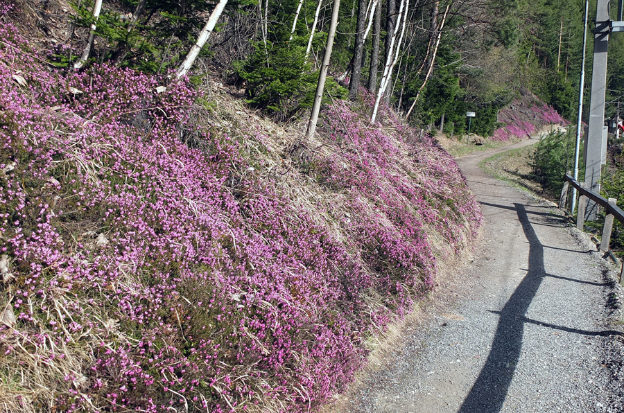 Weg – vorbei an schon blühenden, sonnenüberfluteten Hängen, entlang der