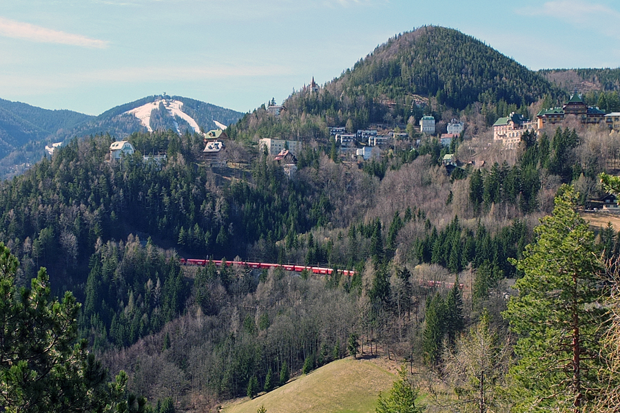 gibt es diese schöne Aussicht auf den Ort Semmering und den Hirschenkogel.