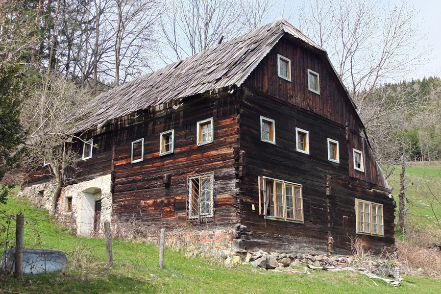 mittlerweile verlassenen Bauernhäusern vorbei.