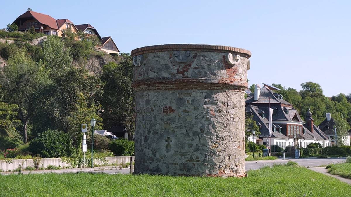 Beim Schloss Luberegg ist am Ufer der Donau dieser Turm zu sehen, der