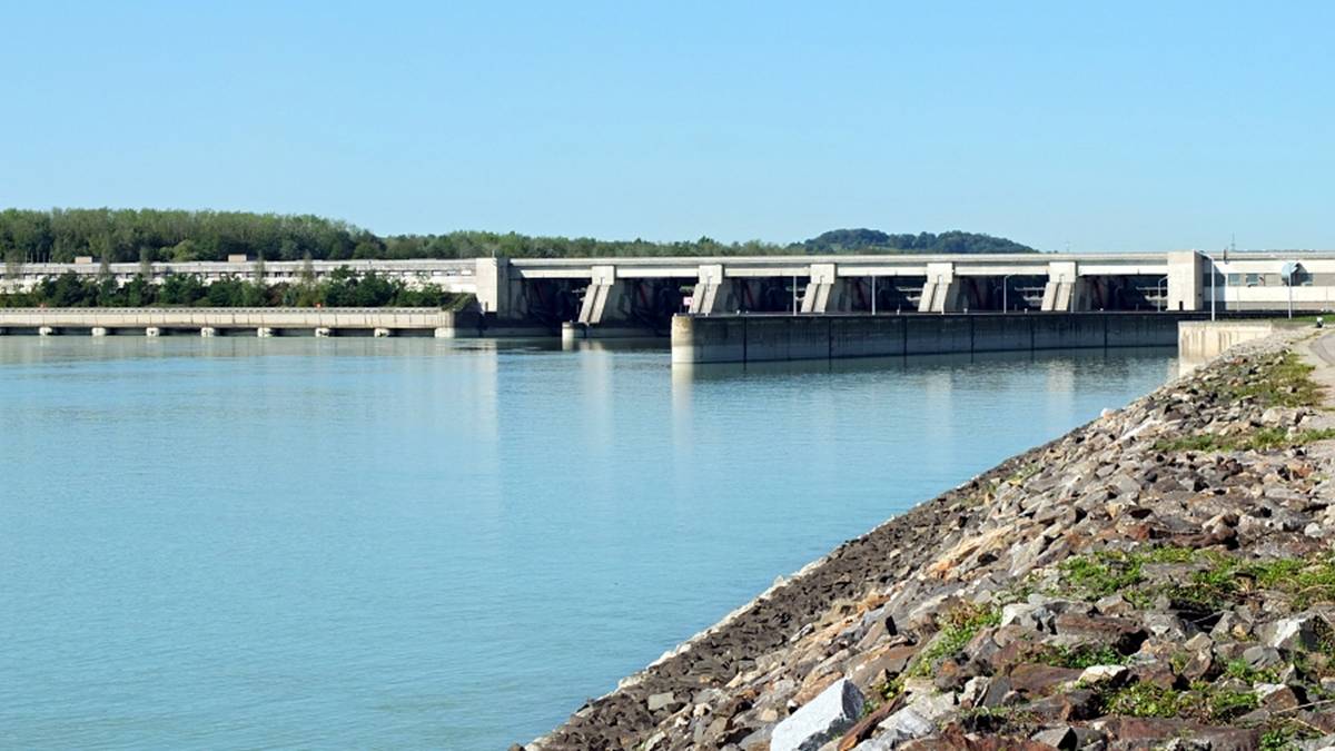 schon das Donaukraftwerk Ybbs – Persenbeug zu sehen – das seit dem Jahr 1959