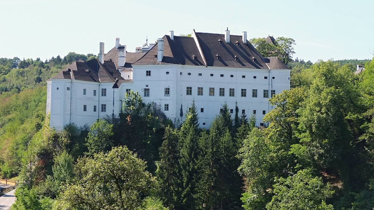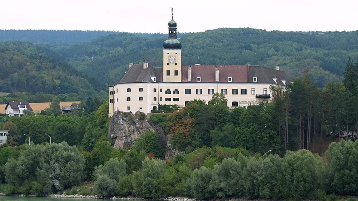 Vom gegenüberliegenden Donauufer präsentiert sich das Schloss Persenbeug