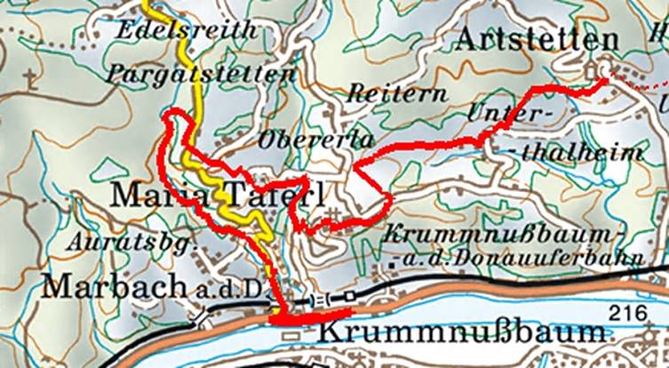 27.8.2015 Artstetten - Marbach (17 km) Die 2. Etappe verläuft von