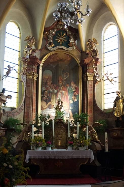 der heiligen drei Könige“ und im Aufsatzbild den Hl. Nikolaus.