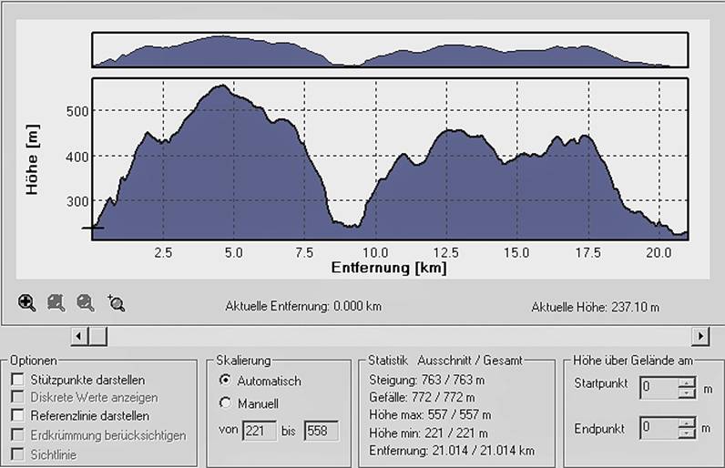 Durch das zweimalige Auf und Ab sind auf 21 Kilometer Länge