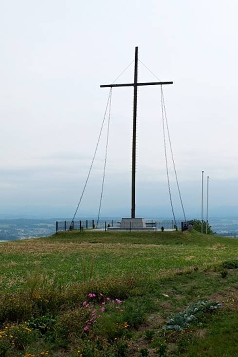 Dann führt der Weg noch am Friedenskreuz vorbei, von dem man …