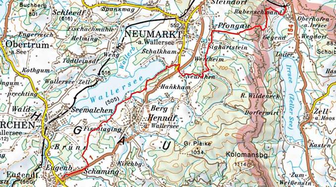 nach Köllersberg, von wo wir noch einmal zum Wallersee zurückblicken können.