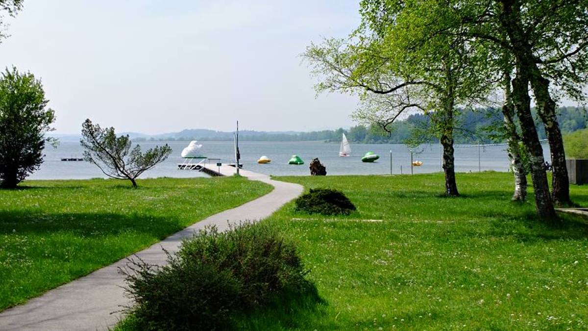 ans Ufer des Wallersees, wo wir uns im Restaurant des Strandbades eine