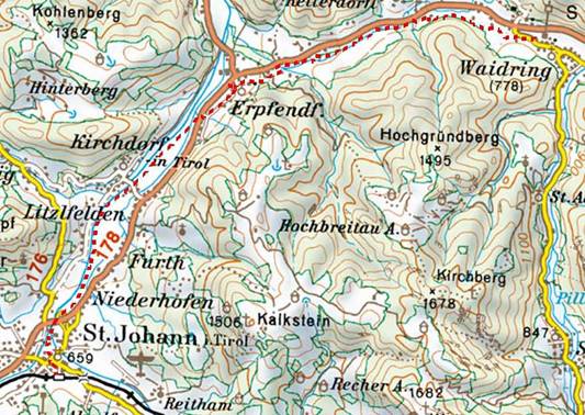 und führt über Kirchdorf in Tirol nach St. Johann in Tirol.