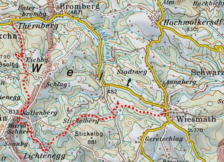 führte von Thernberg über Maria Schnee, Lichtenegg und Stickelberg nach
