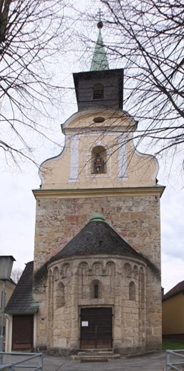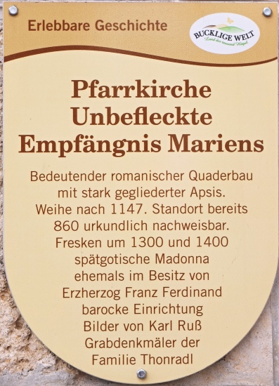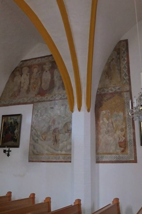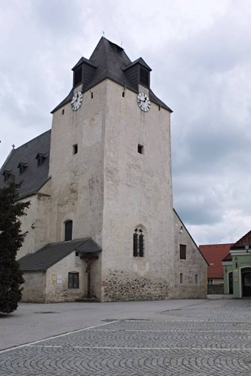 Wehrkirche von Wiesmath, in der noch Fresken aus dem 14. Jahrhundert erhalten
