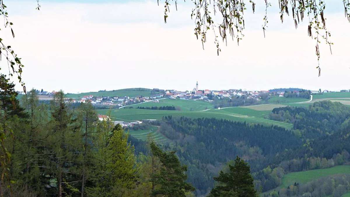 können wir in 8 Kilometern Entfernung das Ziel der 3. Etappe, Wiesmath, sehen.