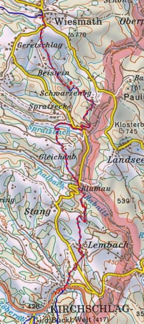 letzten Aufstieg lag dann das Ziel der 4. Etappe, Kirchschlag vor uns.