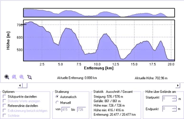 Abstiege summierten sich zu einer Gesamtsteigung von 576 hm Steigung und 861