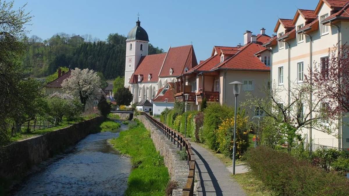 Kirchschlag, am Ufer des Zöbernbachs, befindet sich