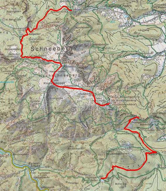 auf den 2.076 m hohen Schneeberg benutzten wir für ein kurzes Stück (*) die