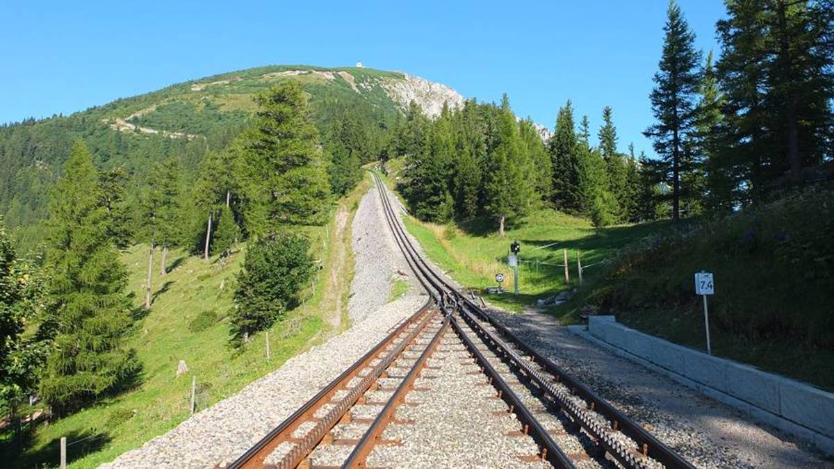 Zahnradbahn, wodurch die Steigung auf 536 hm reduziert werden konnte. Die Bergab - Strecke