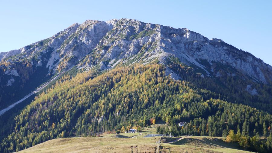Beim Schoberhof hatten wir diesen schönen Blick zurück zum Schneeberg.