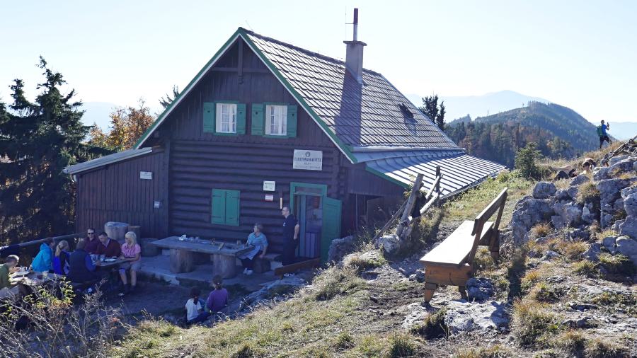 Kurz vor Mittag erreichten wir das Öhler-Schutzhaus, das auf einem 1024 m hohen Sattel steht.