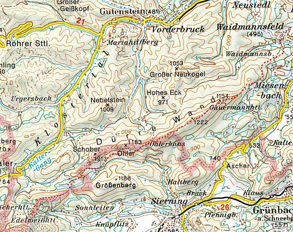 Danach ging es weiter bergauf zum Katharinenschlag (1.222 m hoch), von wo wir die gegenüber liegende "Hohe Wand" erblickten.