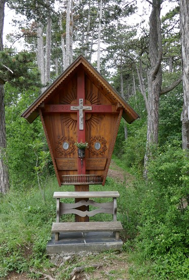 Beim Waldbad von Markt Piesting steht dieser schön renovierte Tabernakelbildstock.