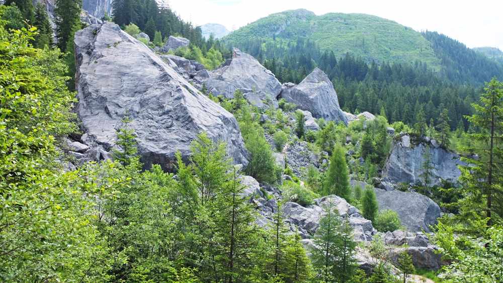 Kurz danach passierten wir diesen eindrucksvollen Felssturz, der sich im Jahre 1978 ereignete und bei dem ca. 50.000 m³ Gestein aus der Zwerchwand ausbrachen.