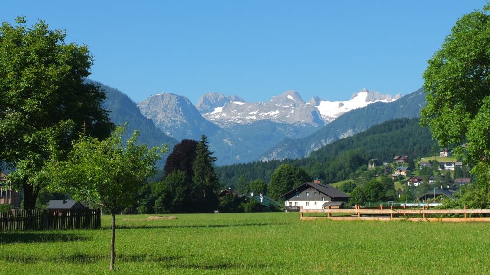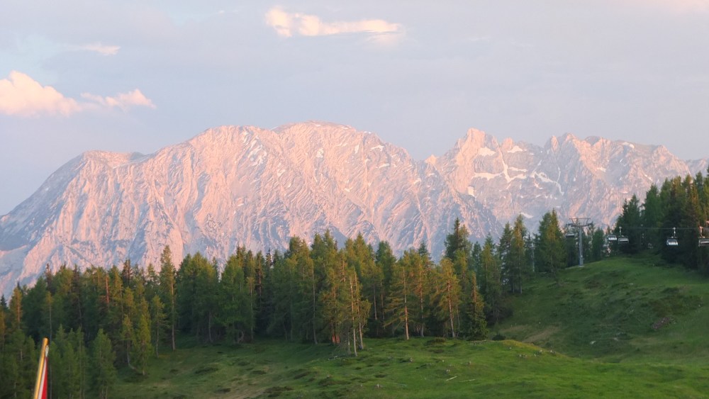Am nächsten Morgen, als wir diesen schönen Blick auf den Dachstein genießen durften, herrschte Traumwetter.