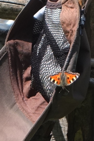 Ein "Kleiner Fuchs" labte sich am salzigen Schweiß meiner Kappe.