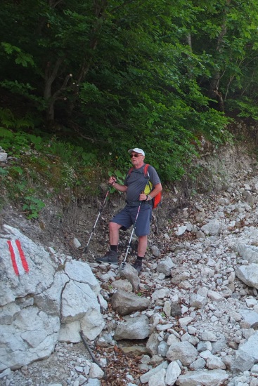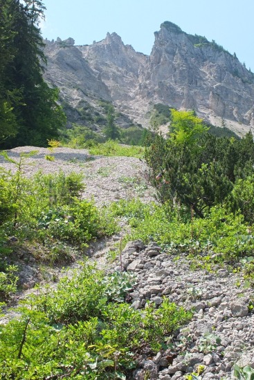 Zunächst führte der Steig in praller Sonne durch steile Geröllhalden.