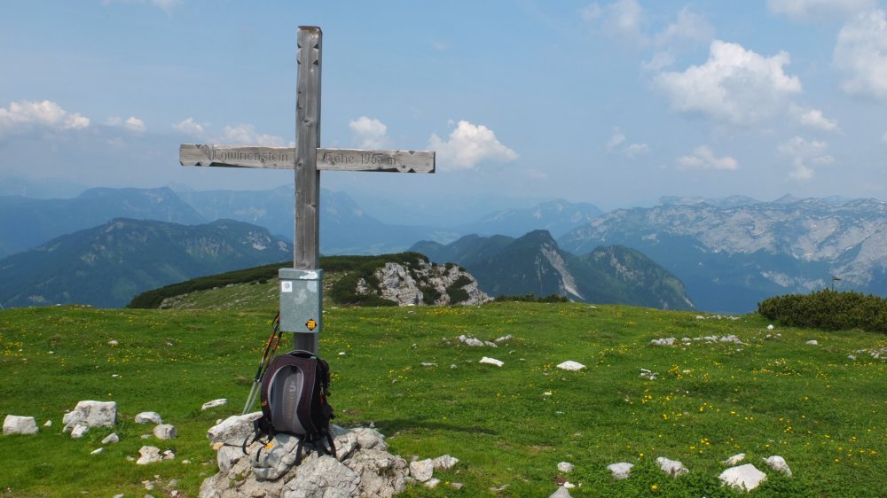 Im Norden des Lawinensteins sieht man den Grundlsee schimmern.