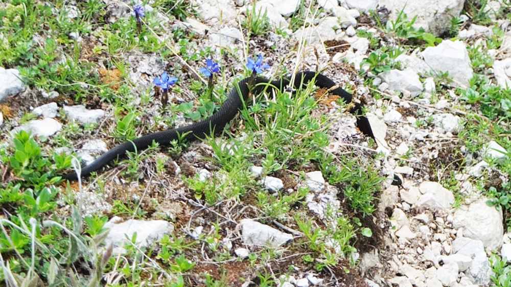Beim Abstieg begegnete ich dieser Kreuzotter, die sich aber gleich in einen Felsspalt zurückzog.