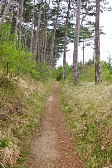 Der Weg führt sanft ansteigend auf schönen Wegen durch Föhrenwälder.