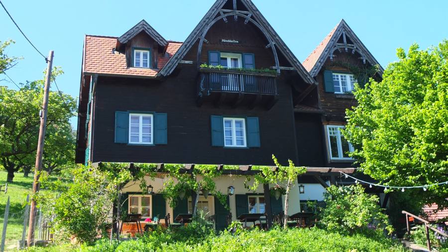 Am Ende unserer Wanderung steigen wir in Kritzendorf noch 50 Höhenmeter die Schelhammergasse zum Heurigen Ubl-Doschek hinauf, wo wir uns eine verdiente Jause gönnen.