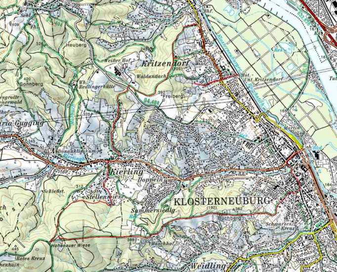 Unsere Wanderung führte von Klosterneuburg hinauf zum Haschhof, hinunter nach Kierling, wieder hinauf zum Weißen Hof und schließlich wieder hinunter nach Kritzendorf.
