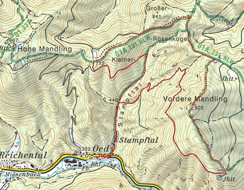 Diese Wanderung führte von Oed durch das Stampftal auf die Vordere Mandling und über die Rosenkogel und das Stampftal zurück nach Oed.