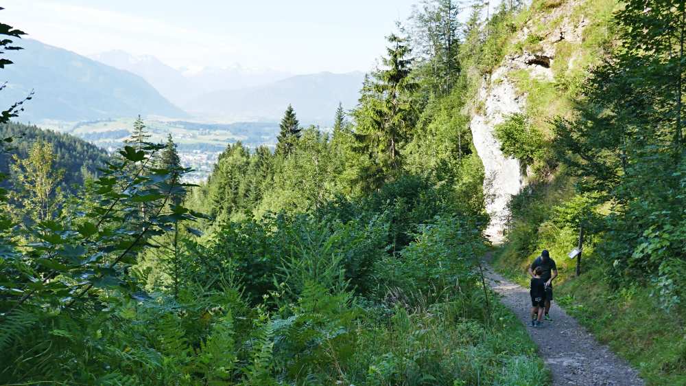 In Serpentinen führt der Weg zumeist durch Wald den Berg hinauf.
